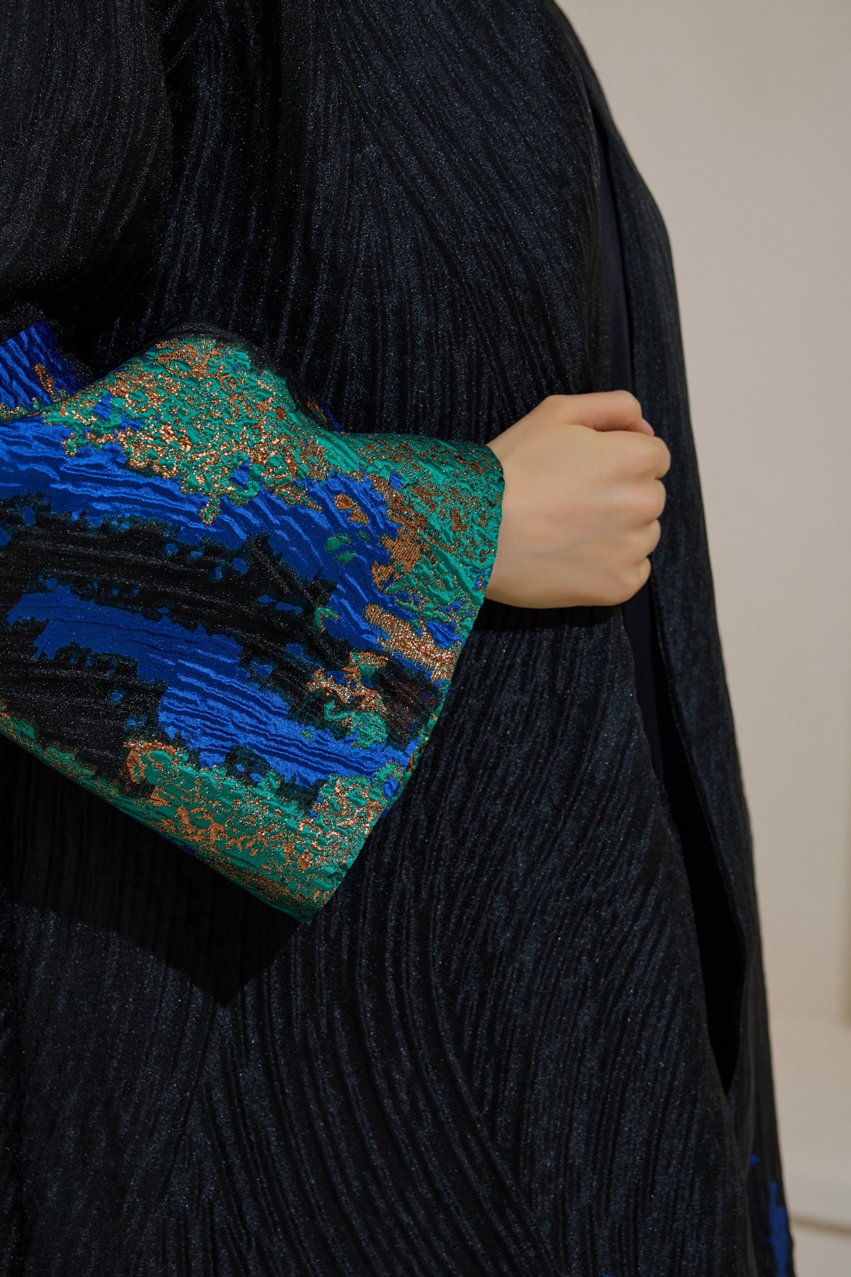 Bold yet refined, Midnight Sapphire captures the mystery of the night sky with vivid sapphire and emerald accents against a deep black base. The interplay of colors creates a striking silhouette that balances elegance with modern artistry. Designed for the woman who moves with confidence, this piece makes an unforgettable statement.
